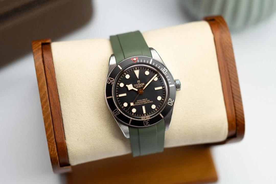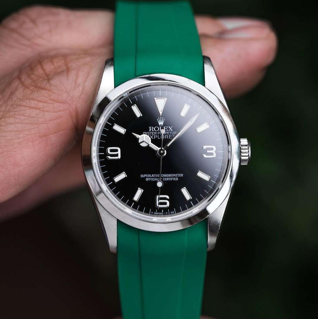 .. I fitted it with a beautiful and super comfortable green @tempo_mat rubber strap that gives it colour and a lot of sportiness..
